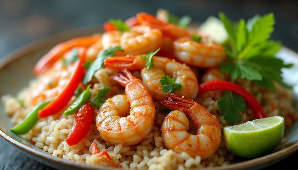 Le riz sauté aux crevettes et légumes croquants façon thaï est une recette rapide qui nous transporte en Asie. Ce plat riche en couleurs et en saveurs est idéal pour un dîner en semaine ou pour impressionner vos invités. En moins de 20 minutes, vous pouvez réaliser cette spécialité exotique facilement.