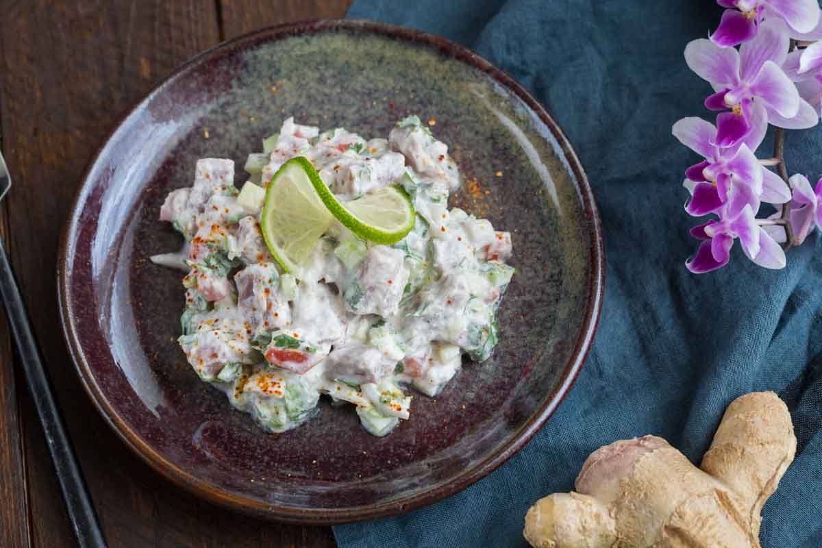 Un tartare de poisson au lait de coco et gingembre