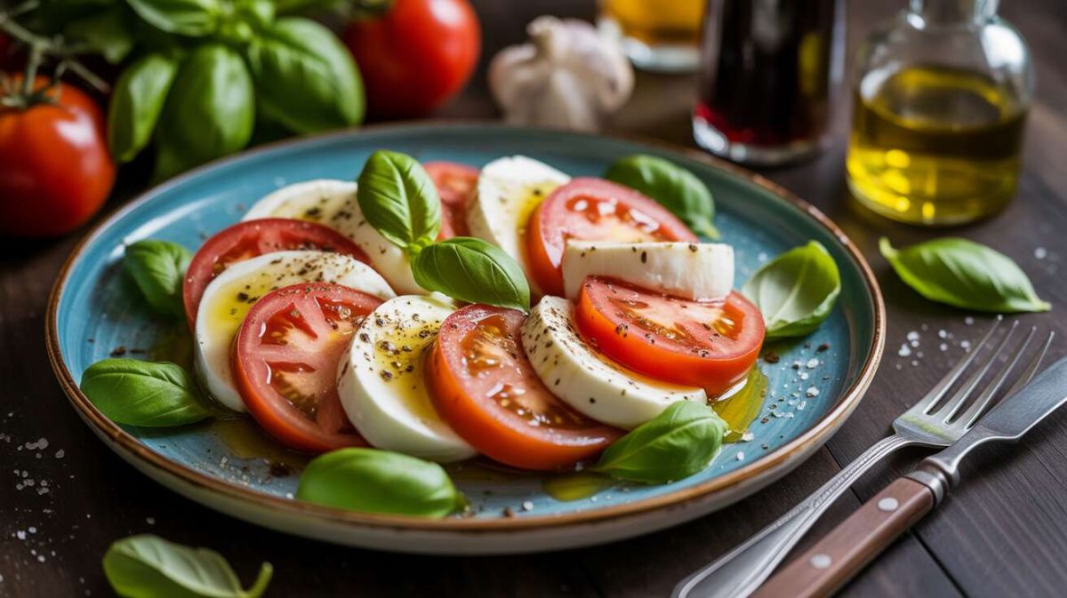 La salade caprese, qui trouve ses racines dans les années 1920 sur l'île de Capri, fait souvent office d'entrée ou de plat d'accompagnement, mettant en lumière la fraîcheur des ingrédients locaux.