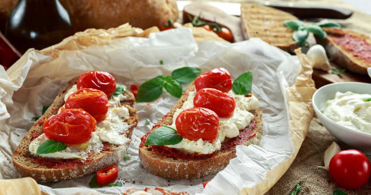Pendant que les tomates rôtissent, préparez quelques tranches de pain de campagne. Pour une cuisson optimale, faites-les dorer à la poêle avec une noix de beurre plutôt qu'au grille-pain. Étalez ensuite une généreuse couche de burrata (environ une demi-boule par tartine) ou de stracciatella. Disposez les tomates confites, que vous pouvez napper d'un peu de miel pour adoucir le goût. Salez et poivrez, puis ajoutez éventuellement une touche de crème de vinaigre balsamique. Terminez avec du basilic ciselé pour une note de fraîcheur. "C'est une recette rapide à préparer le soir, idéale pour le dîner, mais parfaite aussi pour un apéro entre amis", souligne Fleur. Ces tomates confites peuvent également rehausser les salades ou les plats de pâtes.