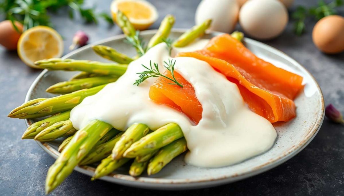 La sauce mousseline est une variante de la sauce hollandaise, enrichie de crème fouettée, qui lui confère légèreté et onctuosité.