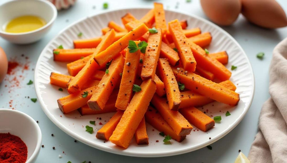 Nettoyez les patates douces et coupez-les en bâtonnets uniformes pour assurer une cuisson homogène.