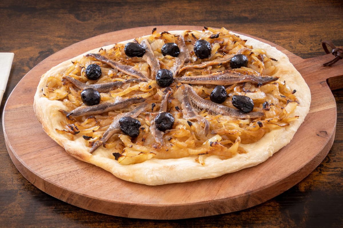 La pissaladière, cette délicieuse tarte niçoise, allie croustillant et fondant avec une garniture savoureuse d'oignons caramélisés, d'anchois et d'olives noires. Originaire de Nice, ce plat traditionnel évoque les saveurs du soleil méditerranéen et se déguste souvent comme entrée ou apéritif.