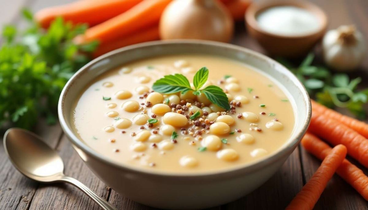 Immergez-vous dans un monde de saveurs réconfortantes avec cette délicieuse soupe crémeuse aux haricots blancs. Sa texture douce et onctueuse vous promet un moment gourmand à chaque cuillère.