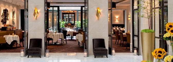 Ouvert sur un patio verdoyant, Le Burgundy propose une cuisine traditionnelle dans un cadre raffiné.