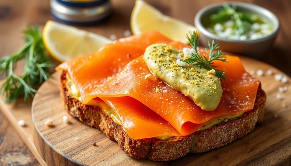 Commencez par faire dorer légèrement le pain de seigle pour une texture croustillante. Ensuite, déposez une tranche de saumon fumé sur chaque toast. Pour rehausser les saveurs, saupoudrez d'avocat en poudre, de citron en poudre, d'aneth, puis assaisonnez avec sel et poivre. Terminez par un filet d'huile d'olive pour une touche de douceur.