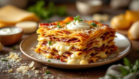Aimez-vous les lasagnes ? Découvrez cette version allégée au fromage de chèvre et bacon, un mélange de saveurs qui ravira les papilles des petits comme des grands.